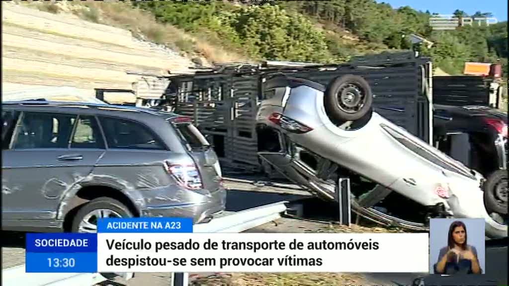 Está condicionada a circulação na A23, a autoestrada da Beira Interior, no sentido norte-sul. Um veículo pesado de transporte de automóveis despistou-se. O acidente não provocou vítimas mas causou prejuízos elevados.