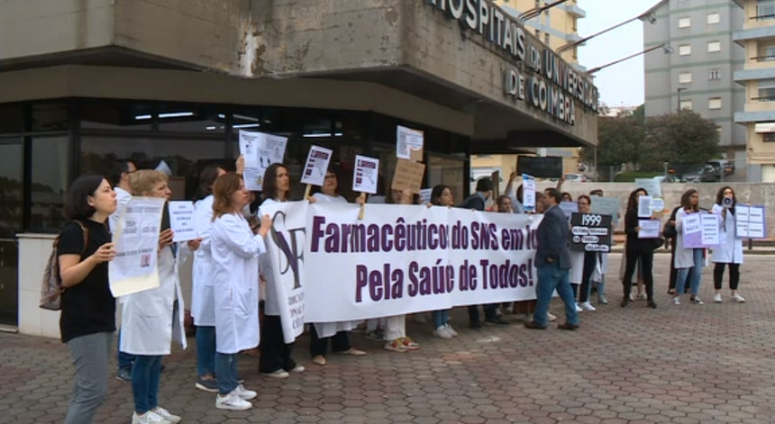 Esta terça-feira, estão em greve os farmacêuticos do Serviço Nacional de Saúde, de vários distritos do norte e centro do país. Durante a manhã, concentraram-se junto ao Centro Hospitalar e Universitário de Coimbra para exigir a atualização da tabela salarial.