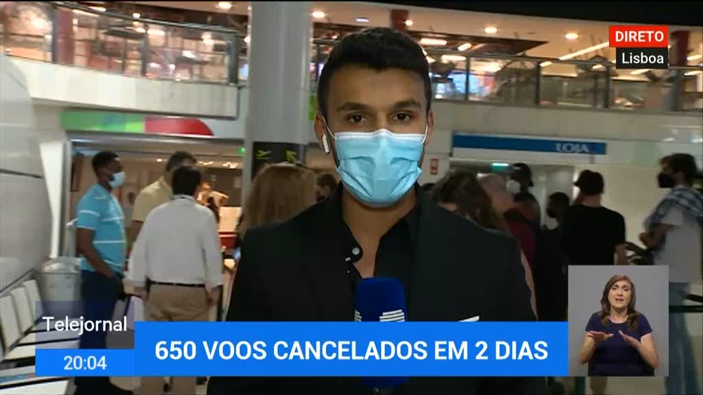O repórter da RTP, Ricardo Cruz, afirma que as filas são agora para realizar novos testes PCR, essenciais para os passageiros cujos voos foram cancelados poderem seguir viagem nas próximas 48h00.
