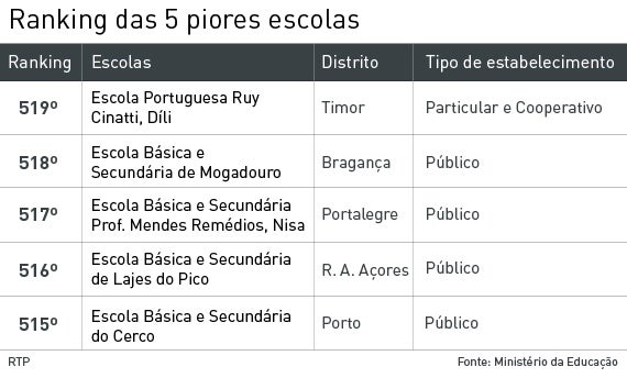 Nota: o artigo foi produzido em conjunto com a Lusa. Estes foram os critérios da Lusa para a realização da lista das escolas: