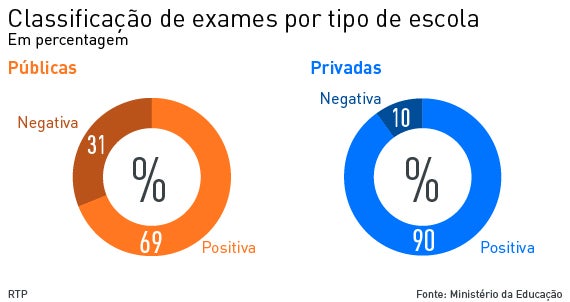 Os dados têm como base os resultados da primeira fase dos exames nacionais do ensino básico e secundário, baseando-se em informação disponibilizada pelo Ministério da Educação e Ciência.
