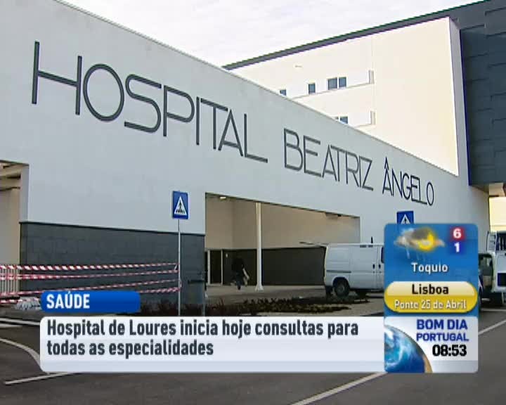 O Hospital de Loures tem disponíveis a partir de hoje, consultas de todas as especialidades. A nova unidade hospitalar tem vindo a activar as valências de forma progressiva. Para dia 22 está prevista a abertura do serviço de urgências. Espera-se que no dia 27 de Fevereiro o Hospital Beatriz Ângelo esteja a funcionar em pleno.