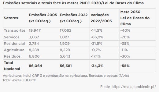O compromisso do Estado português para a redução deste tipo de emissões é ambicioso, com o objetivo de chegar a 2030 com uma redução de 55 por cento face a 55% das emissões em relação a 2005, em linha com a ambição prevista na Lei de Bases do Clima.