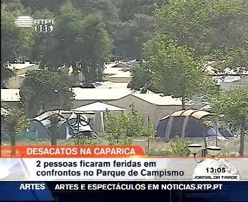 Os confrontos no parque de campismo do Inatel na Costa de Caparica resultaram na suspensão de seis campistas e na detenção de um cidadão estrangeiro sem documentos. Duas pessoas ficaram feridas na noite passada, em desacatos entre dois grupos que participavam num torneio de futebol no recinto polidesportivo do parque. Ainda durante a noite, mas na Quinta da Fonte, em Sacavém, três pessoas foram atingidas a tiro e uma viatura foi incendiada.