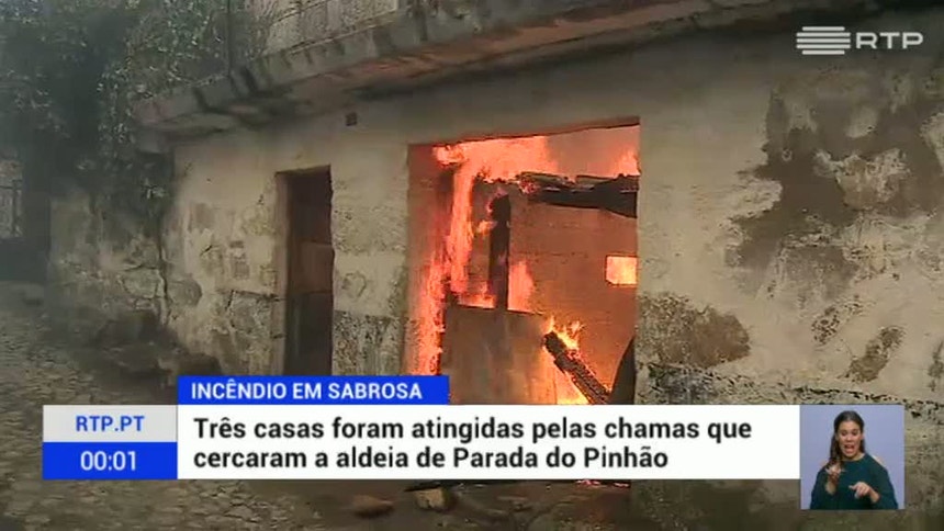 As chamas destruíram três casas na aldeia.