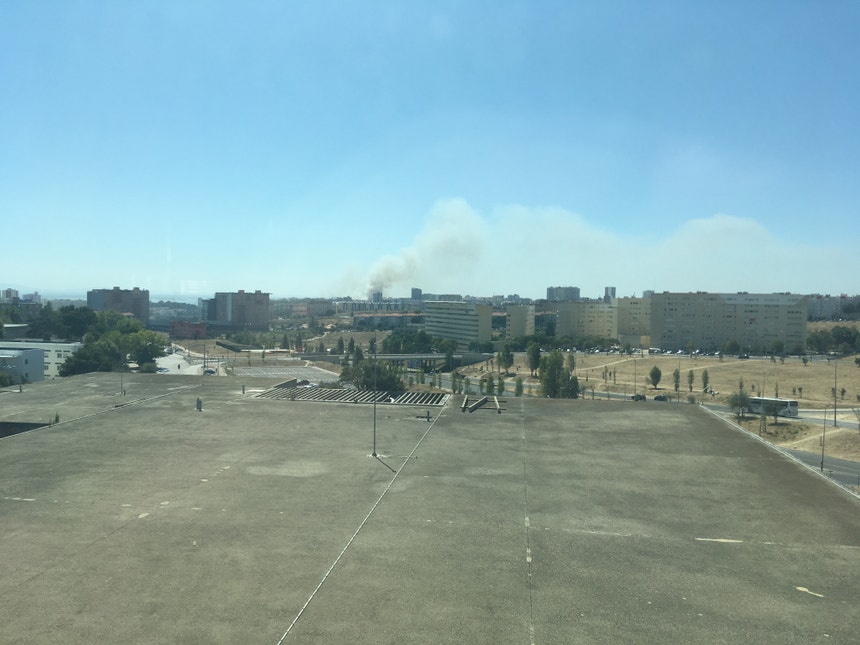 A coluna de fogo provocada por este incêndio foi visível em vários pontos da cidade de Lisboa.