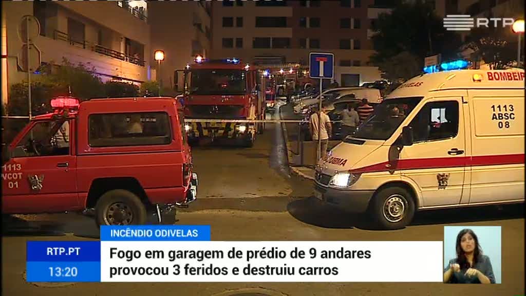 O fogo deflagrou ontem à noite, nas garagens do prédio e destruiu dois automóveis e danificou outros três.
