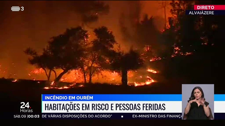 O incêndio em Ourém, distrito de Santarém, estendeu-se ao distrito de Leiria e continua a ser um dos mais preocupantes.