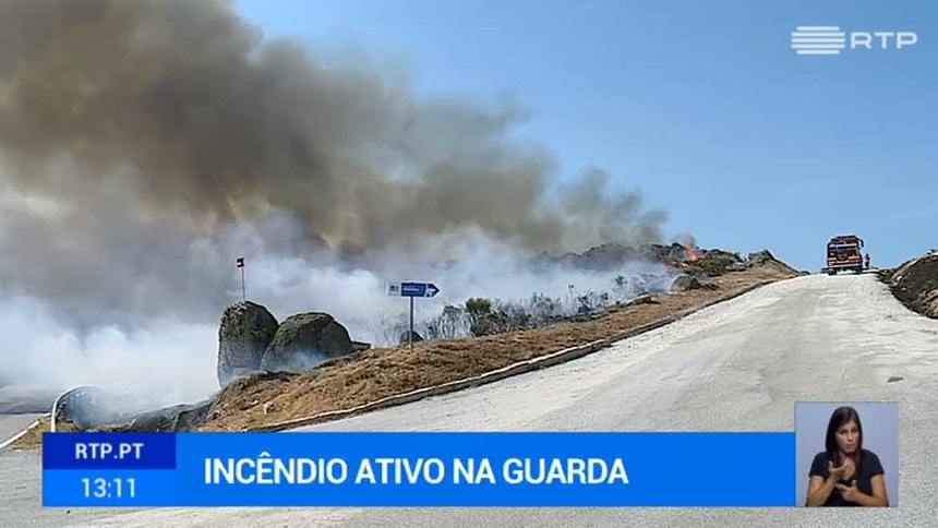 País Incêndio na Guarda com várias frentes ativas O fogo está a ser combatido por mais de 230 operacionais e quatro meios aéreos. RTP / VER MAIS PUB