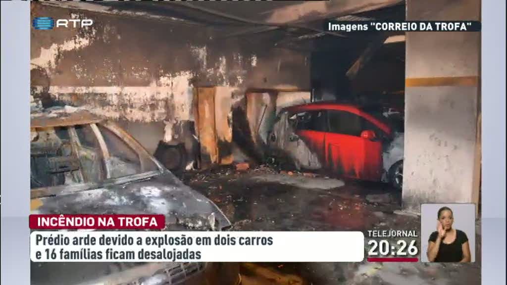 País Incêndio na Trofa causa feridos ligeiros, destrói casas e carros Um incêndio num prédio da Trofa deixou 16 famílias desalojadas. Emanuel Boavista, David Araújo, Rui Magalhães / VER MAIS Pelo menos dois carros terão explodido na garagem. As chamas e o fumo provocaram vários feridos ligeiros. PUB