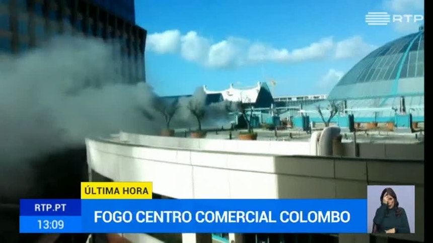 Nas redes sociais circulam já as imagens de uma coluna de fumo denso a sair do telhado do Colombo.