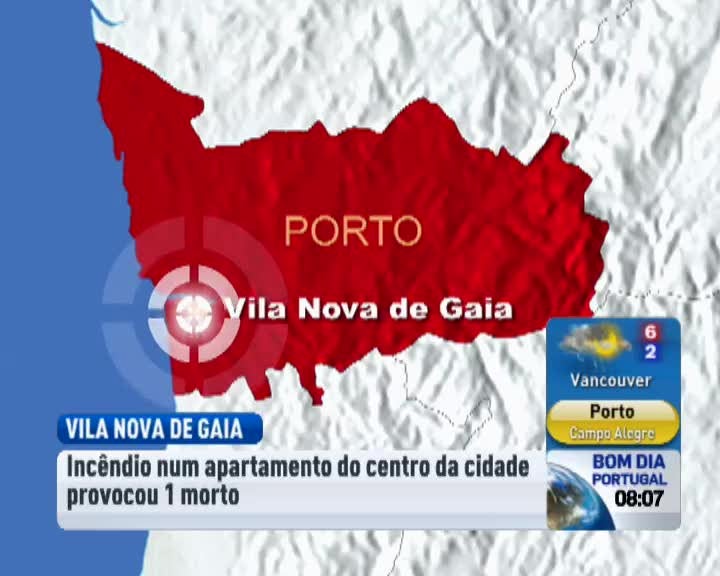 Uma pessoa morreu na sequência de um incêndio num apartamento, no centro de Vila Nova de Gaia. O fogo começou num dos quartos da habitação, por volta das 4 e meia da manhã. No quarto existia uma grande carga eléctrica. Os bombeiros extinguiram rapidamente as chamas, mas não conseguiram evitar a morte de uma mulher.