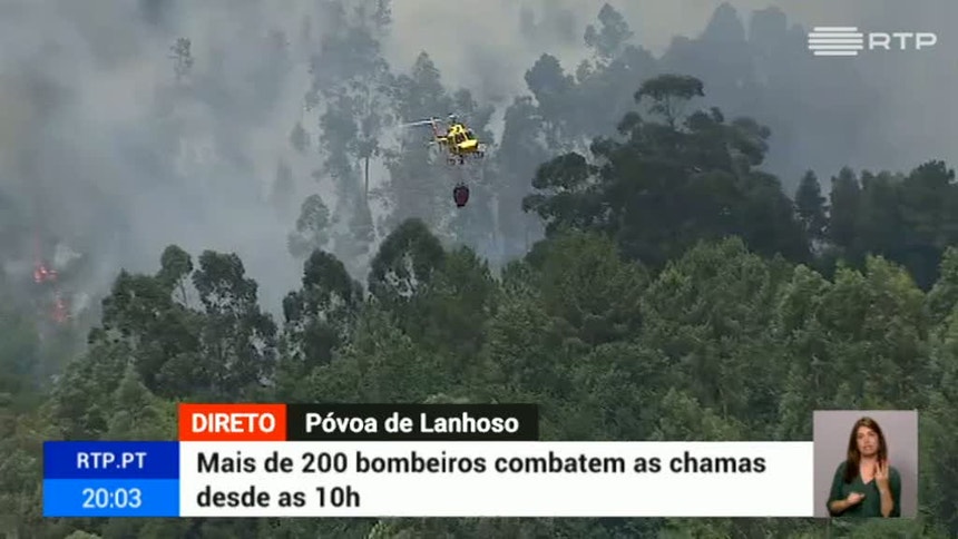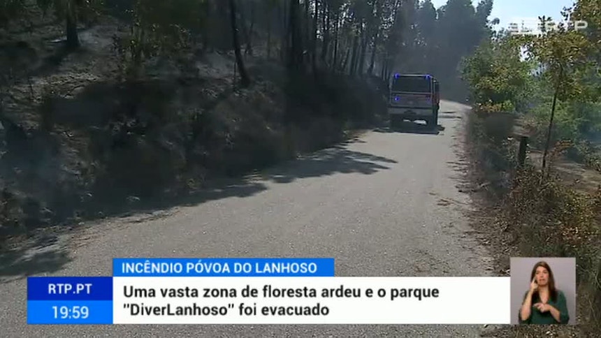 A norte, um fogo de grandes dimensões em Póvoa de Lanhoso, distrito de Braga, levou à retirada de uma centena de pessoas do DiverLanhoso, um parque de desportos radicais.
