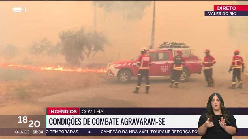 A situação continua descontrolada na Covilhã, com as aldeias de Vales do Rio e Unhais da Serra cercadas pelas chamas. No terreno, a população faz o que pode para salvar os seus bens e apela à disponibilização de meios terrestres para ajudar no combate ao fogo.