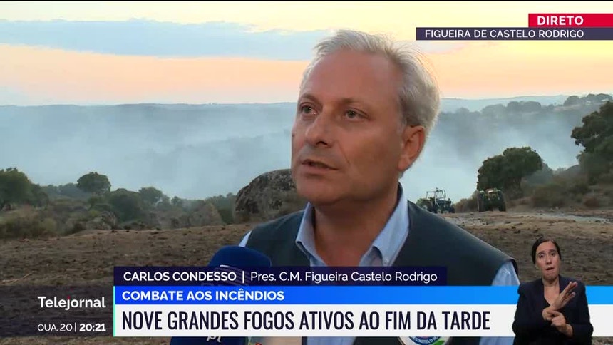 Carlos Condesso explica que o fogo está a dirigir-se para o concelho de Almeida: "o incêndio avançou pela margem do rio Côa, no sentido norte-sul, e está a dirigir-se para o concelho de Almeida, que alcançará se passar o rio".