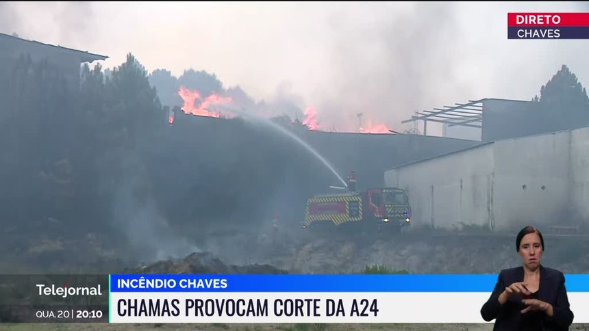 A Autoestrada 24 (A24), em Chaves, reabriu ao trânsito pelas 21h15 no sentido Casino -- Espanha, depois de ter estado cortada nos dois sentidos devido ao incêndio que lavra na zona de Chaves, segundo a GNR.