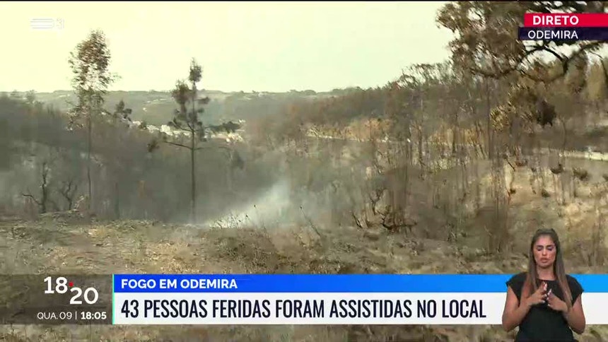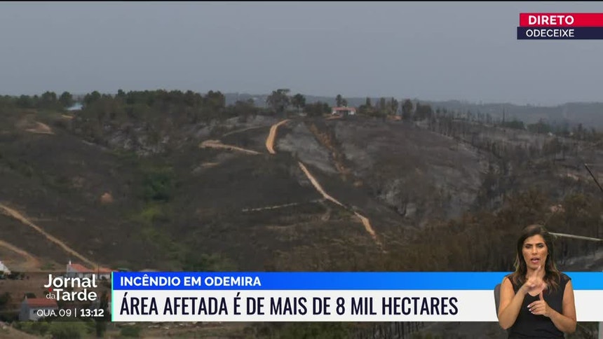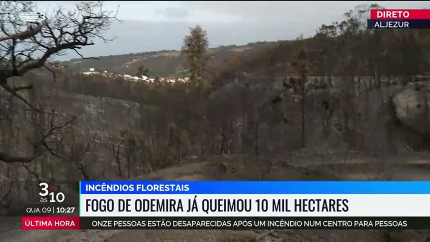 A Proteção Civil avançou que a área ardida no incêndio de Odemira ronda já os dez mil hectares. Um dos maiores receios no combate às chamas é a mudança de direção do vento.