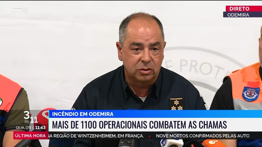 Num `briefing` realizado às 11:40 no posto de comando instalado em São Teotónio, o comandante regional de Emergência e Proteção Civil do Algarve, Vítor Vaz Pinto, afirmou que em todo o perímetro do fogo há poucas chamas ativas.