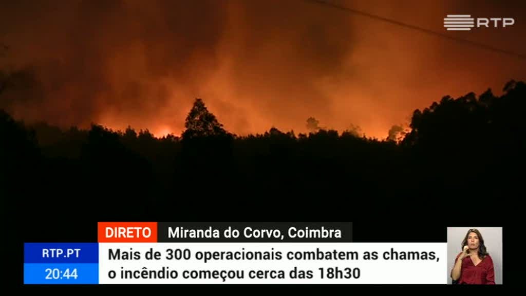 Em Miranda do Corvo, no distrito de Coimbra, há também um grande incêndio. O fogo esteve muito perto de algumas aldeias.