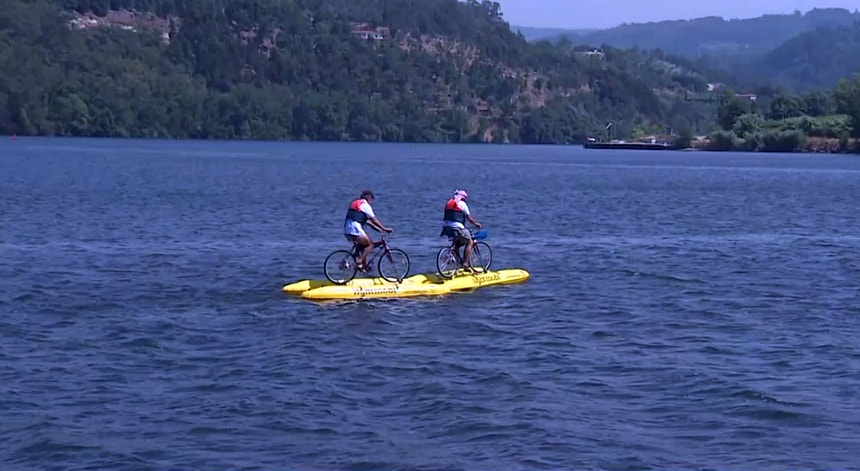 São 220 quilómetros a pedalar na água desde Barca D'Alva até Vila Nova de Gaia. O veículo de duas rodas foi adaptado para as águas do rio.