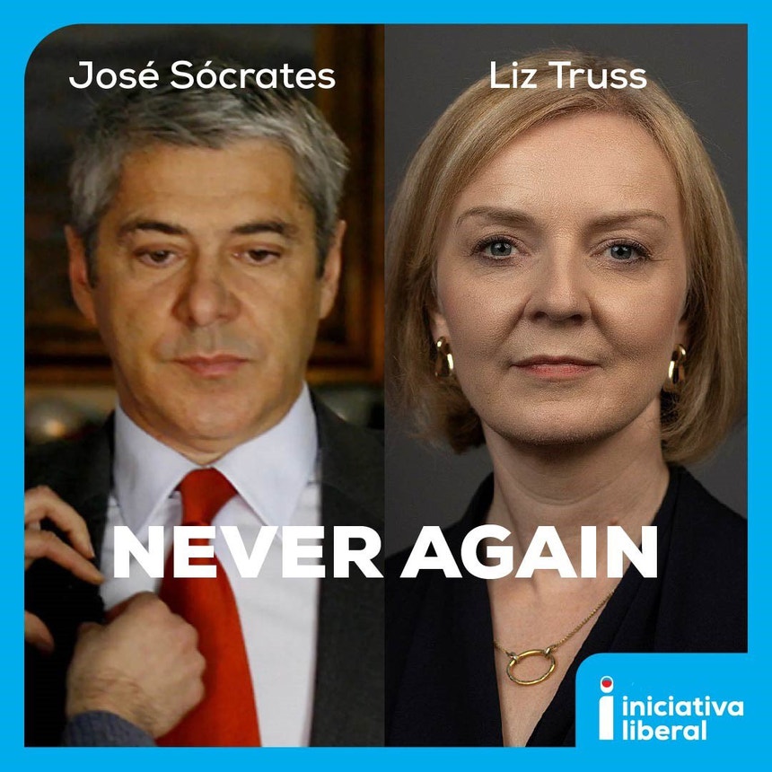 “No, thanks. Never again! Bye, Liz Truss”, concluiram os liberais numa mensagem acompanhada por uma imagem com a fotografia de Sócrates e Truss.