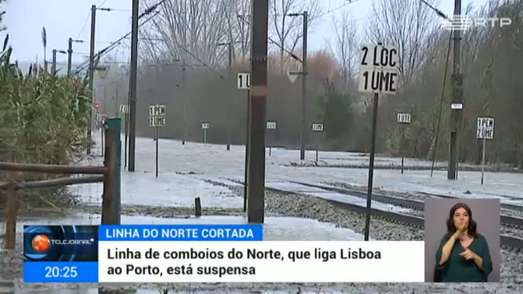 A linha do Norte, que liga Lisboa ao Porto, continua fechada por causa das inundações.