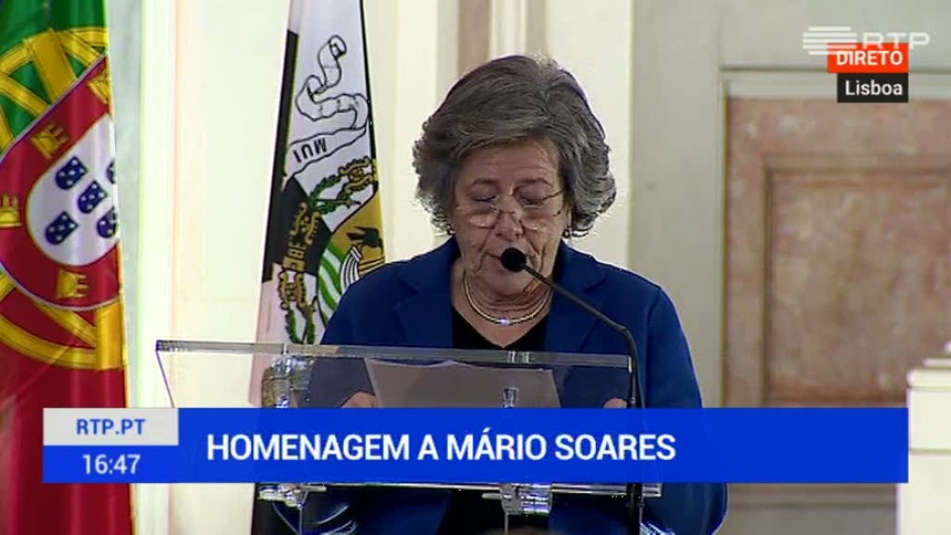 Mário Soares foi este domingo homenageado em Lisboa. A filha Isabel Soares recordou as cerimónias fúnebres de janeiro de 2017. "Tudo foi perfeito", afirmou, antes de agradecer aos organizadores e participantes.