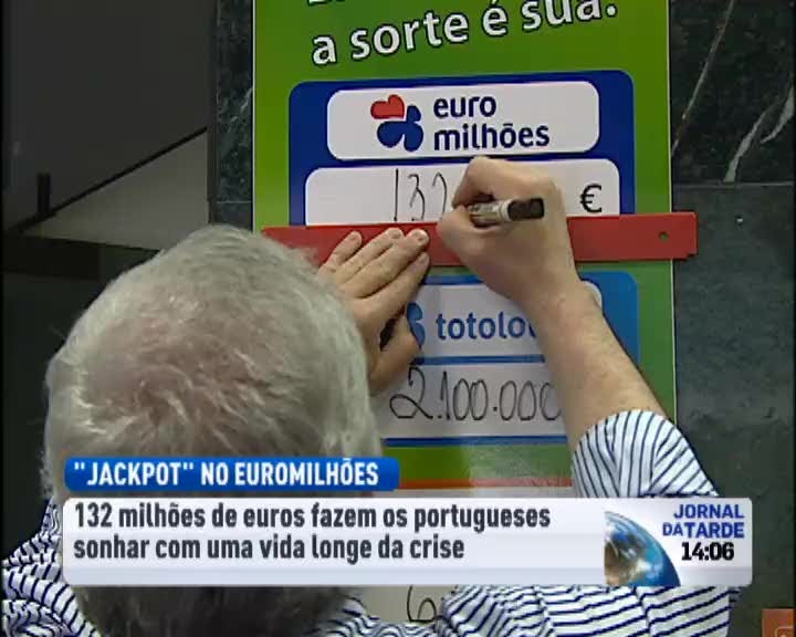 "Jackpot" do Euromilhões dá 132 milhões de euros
