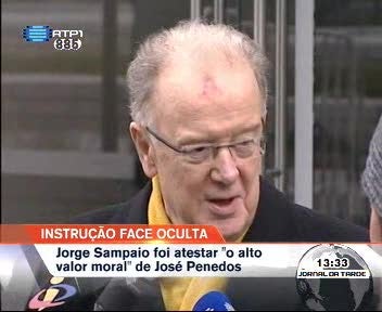 O antigo presidente da República Jorge Sampaio atestou no Tribunal Central de Instrução Criminal (TCIC), em Lisboa, "a competência fora de série e o alto valor moral" de José Penedos, com quem mantém uma relação de amizade. Jorge Sampaio podia ter feito um depoimento escrito mas preferiu responder presencialmente às perguntas do juiz. Também António Vitorino foi ao tribunal arrolado pela defesa de José Penedos.