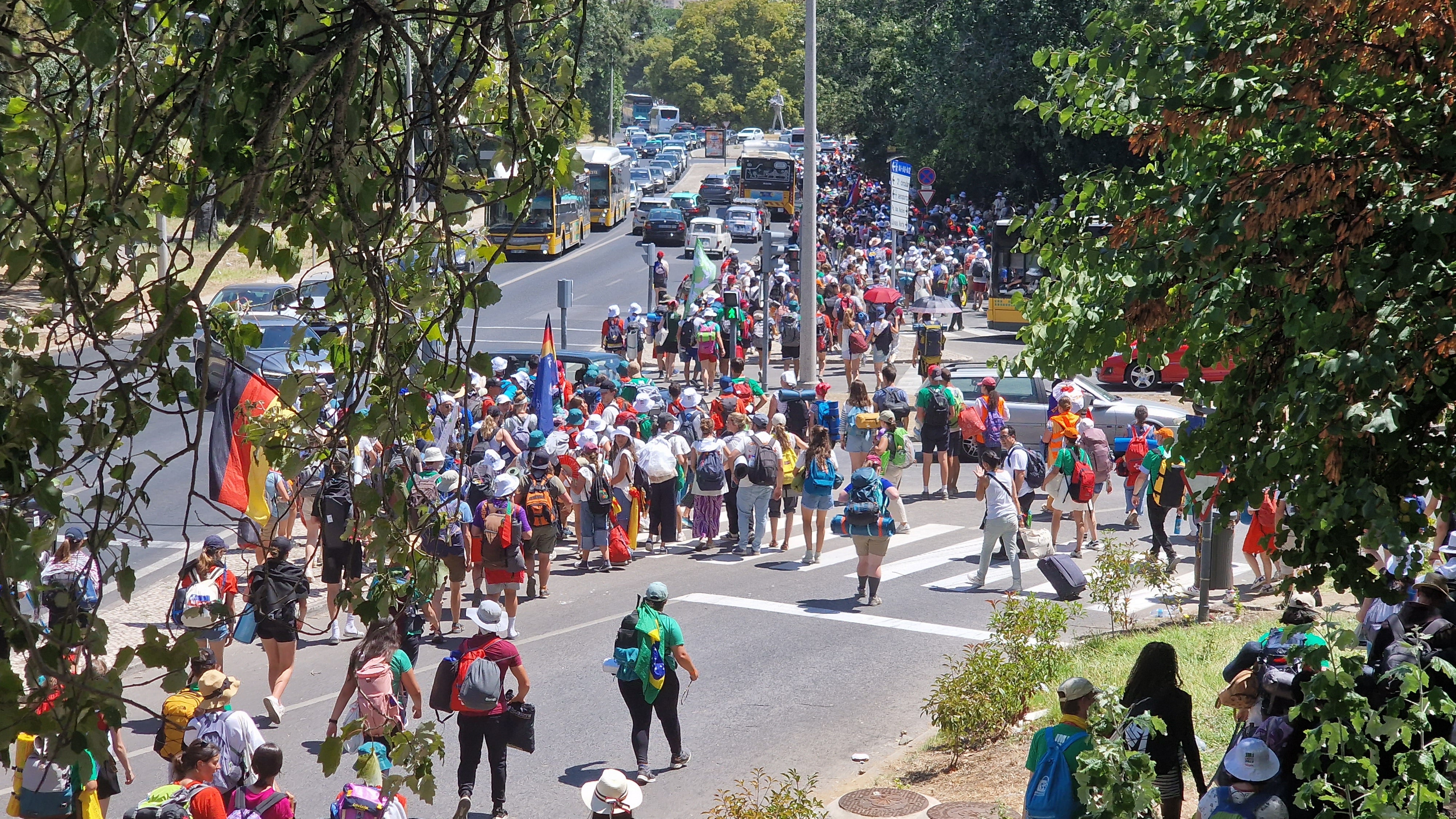 Peregrinos enchem as ruas de Lisboa e dirigem-se para o Parque Tejo
