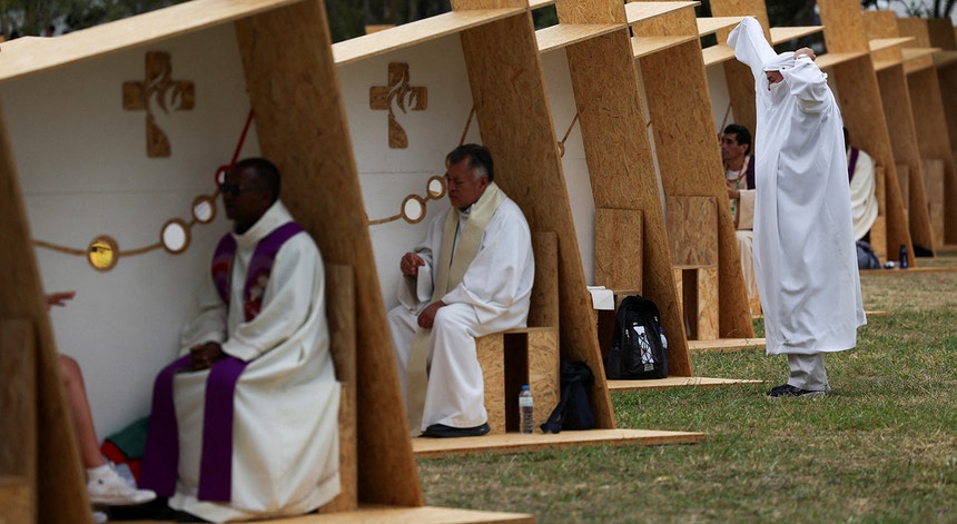 "Demorou hora e meia. Optámos por fazê-los entrar por fases para termos a entrada controlada, eles aderiram e correu tudo bem", contou Ana Filipa Filipe, responsável pelos voluntários no comité organizador paroquial.