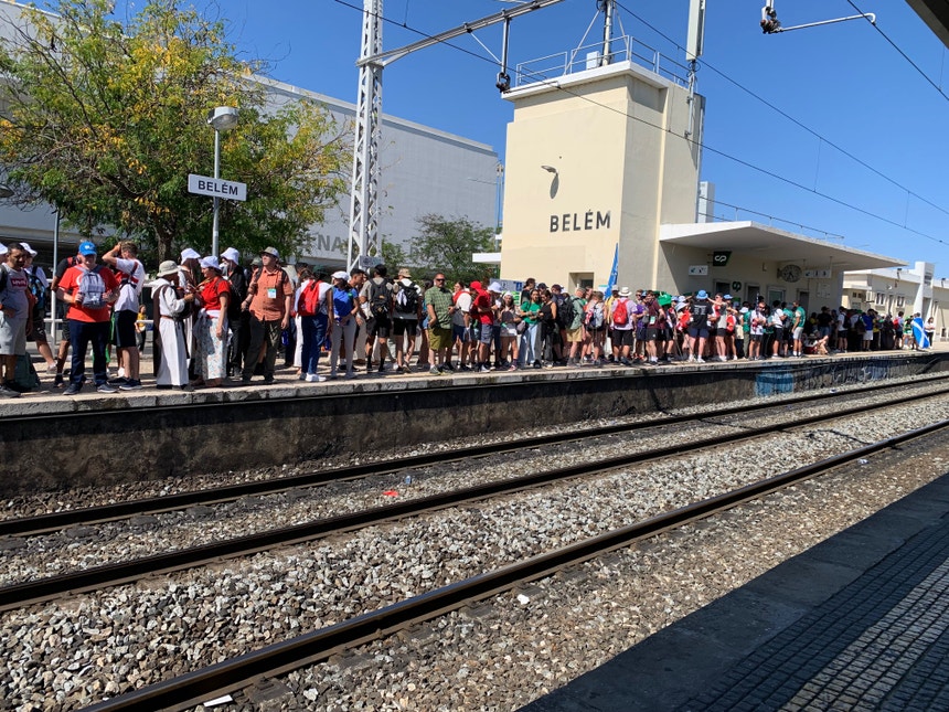Metro, autocarro e comboios. Tudo cheio. As ruas também estão diferentes. Os jovens fazem longas caminhadas para participar na jornada da juventude.