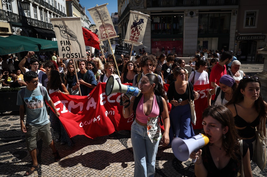 A acção de protesto coincidiu com o dia de greve climática estudantil, um movimento internacional criado há 4 anos.