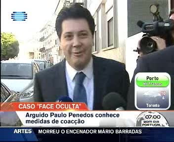 O Juízo de Instrução Criminal de Aveiro prossegue hoje as inquirições de arguidos do processo Face Oculta. Paulo Penedos, advogado de uma empresa de Manuel Godinho e filho do presidente da REN, deve conhecer as medidas de coacção. O pai, José Penedos, foi ouvido durante nove horas. À saída das instalações do DIAP, um dos seus advogados preconizou a duração do interrogatório.