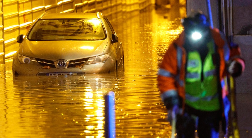 Lisboa com carros submersos e água em lojas e restaurantes