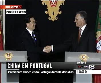 O Presidente da República Popular da China, Hu Jintao, chegou hoje a Portugal para uma visita de Estado de dois dias. O Chefe de Estado chinês que foi recebido, no Palácio de Belém pelo seu homólogo português, elogiou o papel de Lisboa nas questões importantes para a China e destacou o papel português nas relações entre a Pequim e a União Europeia. Por seu lado, Cavaco Silva destacou a amizade e cooperação nas relações entre os dois países, mas recordou que Lisboa e Pequim podem fazer mais no futuro, em especial no campo do comércio bilateral.