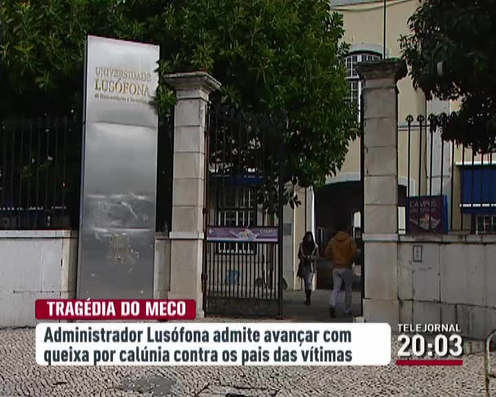 A Universidade Lusófona respondeu a duas vozes à queixa-crime que os pais das vítimas do Meco vão apresentar. O administrador admite avançar com uma queixa por calúnia contra a instituição. E pediu em comunicado a todos os envolvidos que deixem atuar as entidades competentes. O Vice-reitor Carlos Poiares desvaloriza a queixa.