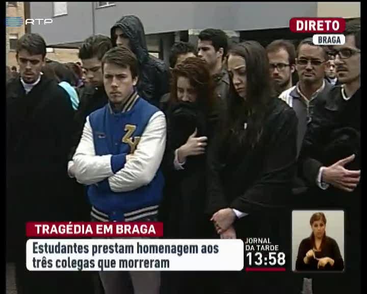 Braga está de luto com a tragédia que matou três jovens universitários. Milhares de estudantes concentraram-se no interior da Universidade do Minho em vigília silenciosa. Muitos deles rumaram depois para o local do acidente.