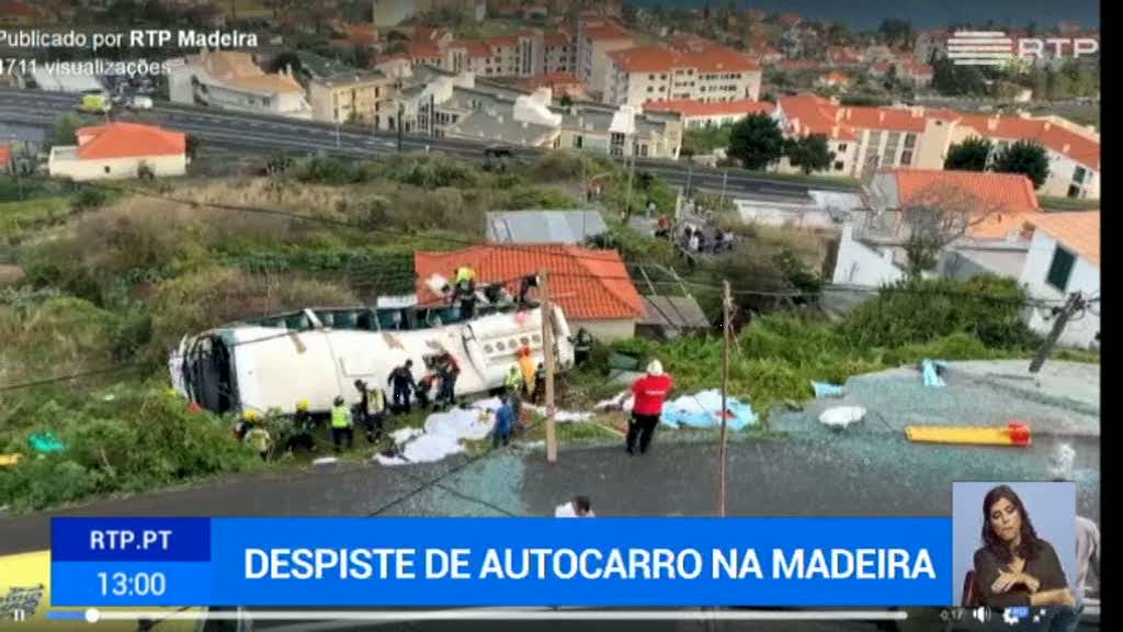 O Governo decretou 3 dias de luto nacional pela morte de 29 pessoas, ontem no Caniço, na Madeira. São turistas alemães que seguiam no autocarro que se despistou e caiu por uma ribanceira. Há ainda 27 feridos. Entre eles dois cidadãos portugueses.
