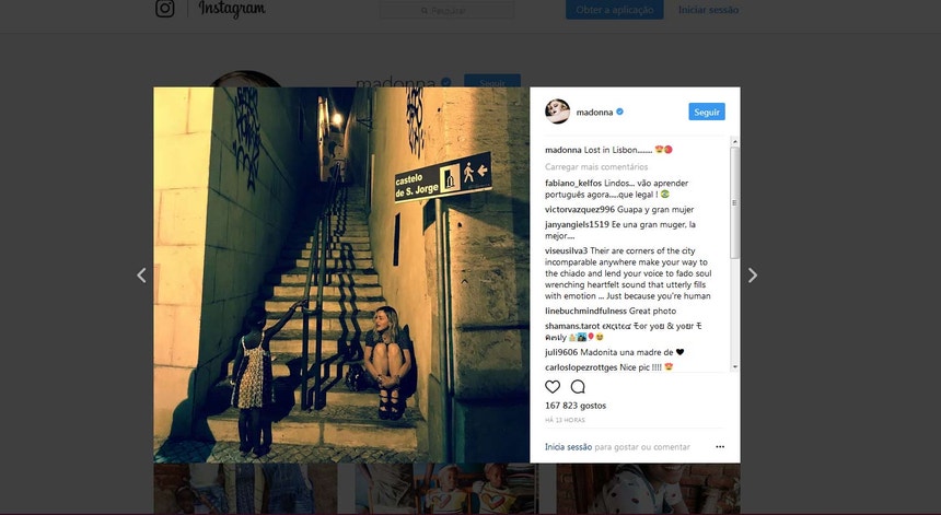 Ainda recentemente, Madonna partilhou uma fotografia em que está sentada numa típica escadaria portuguesa que vai dar ao Castelo de São Jorge. E acontece sempre o mesmo, com este, ou outros posts. Milhares de reações.