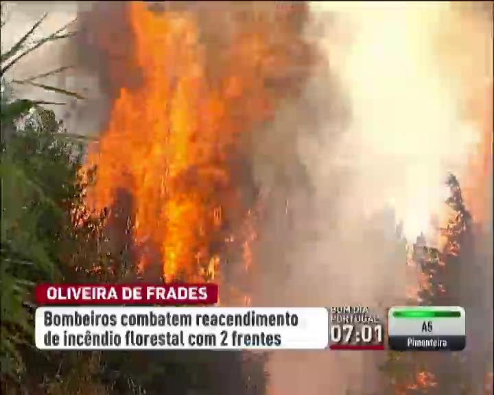 Ao início da manhã desta terça-feira, eram dez os incêndios ativos em Portugal. O incêndio que mobilizava mais meios era o de Oliveira de Frades, onde as chamas estavam a ser combatidas por três centenas de bombeiros, apoiados por quase 100 viaturas.