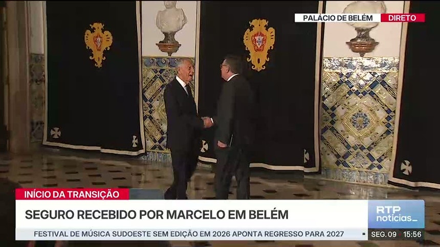 A posse do candidato socialista está marcada para dentro de um mês, a 9 de março. Entretanto, a passagem de testemunho começou a fazer-se esta segunda-feira, com Seguro a ser recebido na residência oficial de Belém pelo presidente cessante, Marcelo Rebelo de Sousa.
