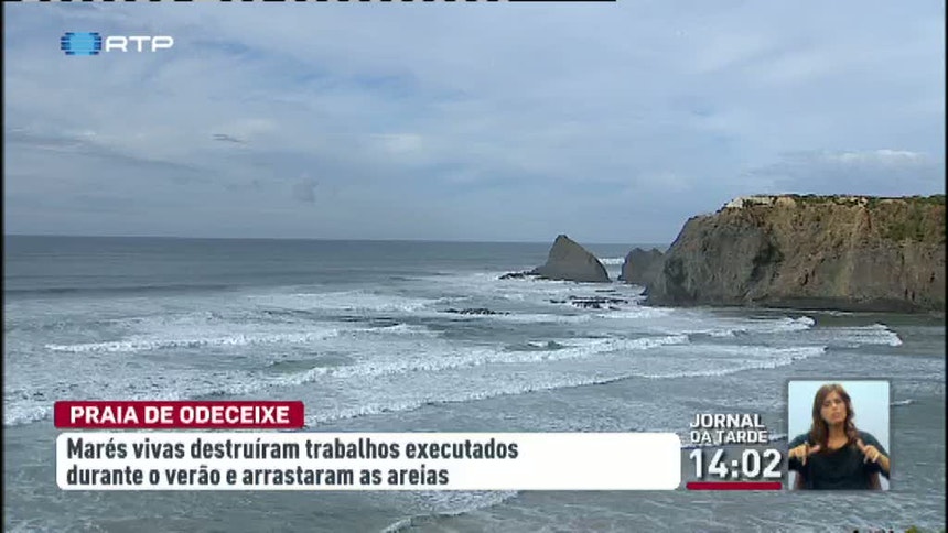 Marés vivas e ondas fortes avançaram sobre a praia de Odeceixe, no Algarve, e destruíram os trabalhos executados durante o verão. Autarquia e habitantes desdramatizam e esperam que o areal recupere antes da época balnear.