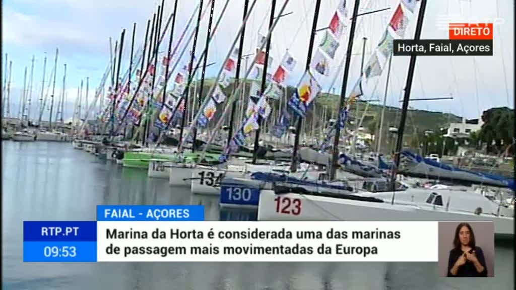 A marina da Horta, nos Açores, é uma das mais movimentadas da Europa por causa posição que tem no Atlântico. Nesta altura do ano, a marina está completamente lotada.