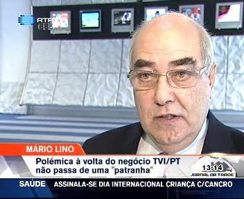 Mário Lino diz que a polémica à volta do negócio da compra da TVI pela PT não passa de uma "patranha". O ex-ministro das obras públicas e comunicações, com a tutela da PT, nega ter tido qualquer conhecimento sobre a intenção da empresa comprar a TVI.
