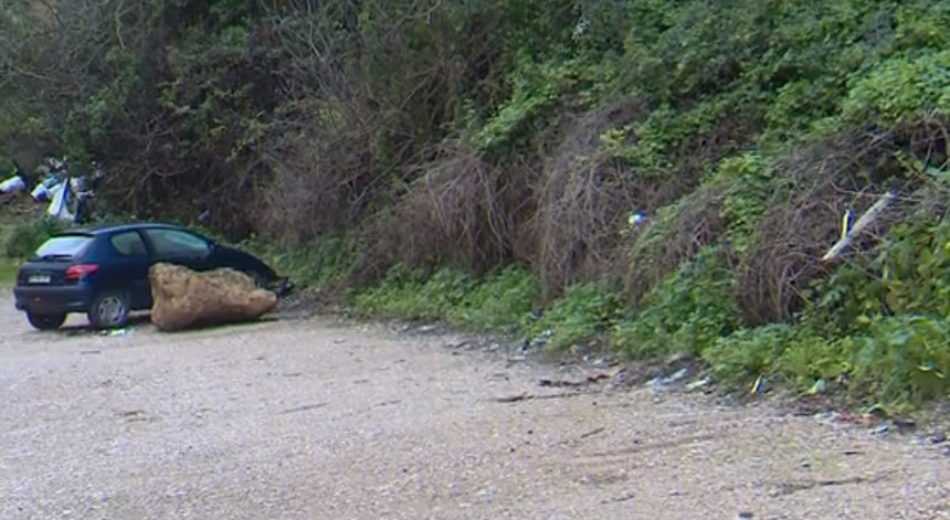 21h11 - Queda de pedras de arriba instável ameaça casas no Monte da Caparica