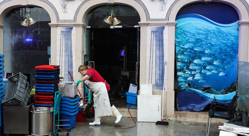 Em Algés limpam-se e avaliam-se os estragos causados pelo mau tempo. Depois do mau tempo na semana passada, muitos comerciantes voltaram agora a ter as lojas cheias de água e já perderam a conta aos prejuízos.