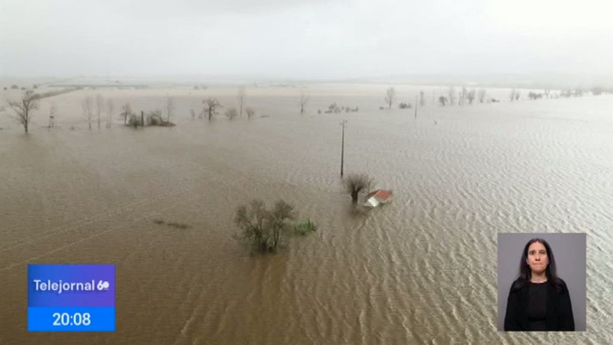 Em Montemor-o-Velho, o caudal do rio Mondego continua a subir. As águas estão a alagar os terrenos agrícolas do baixo Mondego.