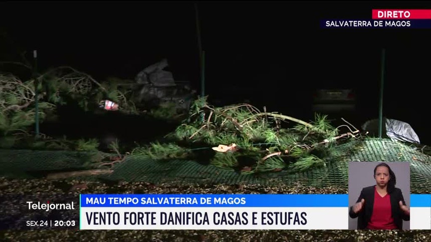 Em Salvaterra de Magos, o mau tempo derrubou dezenas de árvores e danificou casas e estufas. No terreno está já a ser feito o restabelecimento de energia, depois de uma espécie de "pequeno tornado" ter deixado algumas regiões sem luz.