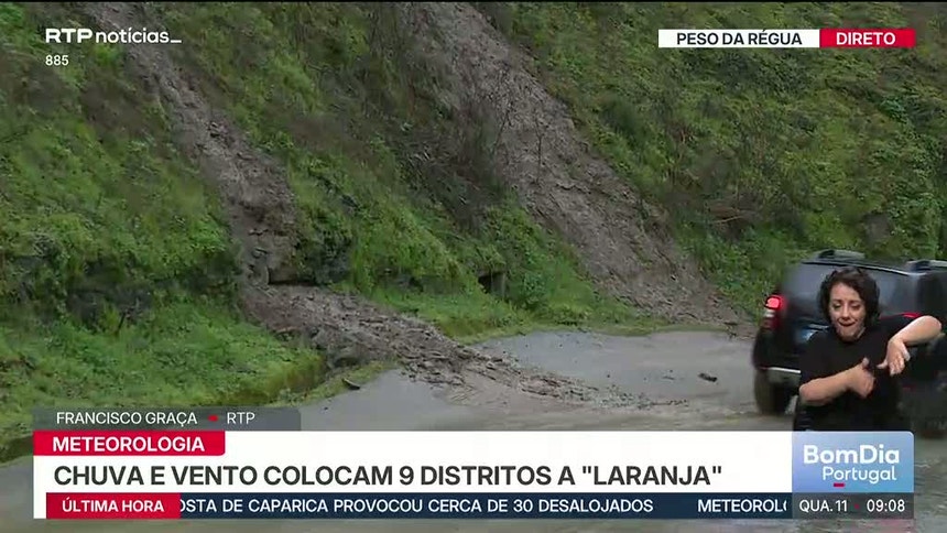 - A meteorologia prevê chuva persistente e por vezes forte nas regiões Norte e Centro. A norte do Rio Mondego, as rajadas de vento podem atingir 100 quilómetros por hora nas terras altas. Estão debaixo de aviso laranja os distritos de Coimbra, Viseu, Porto, Vila Real, Viana do Castelo, Aveiro e Braga;